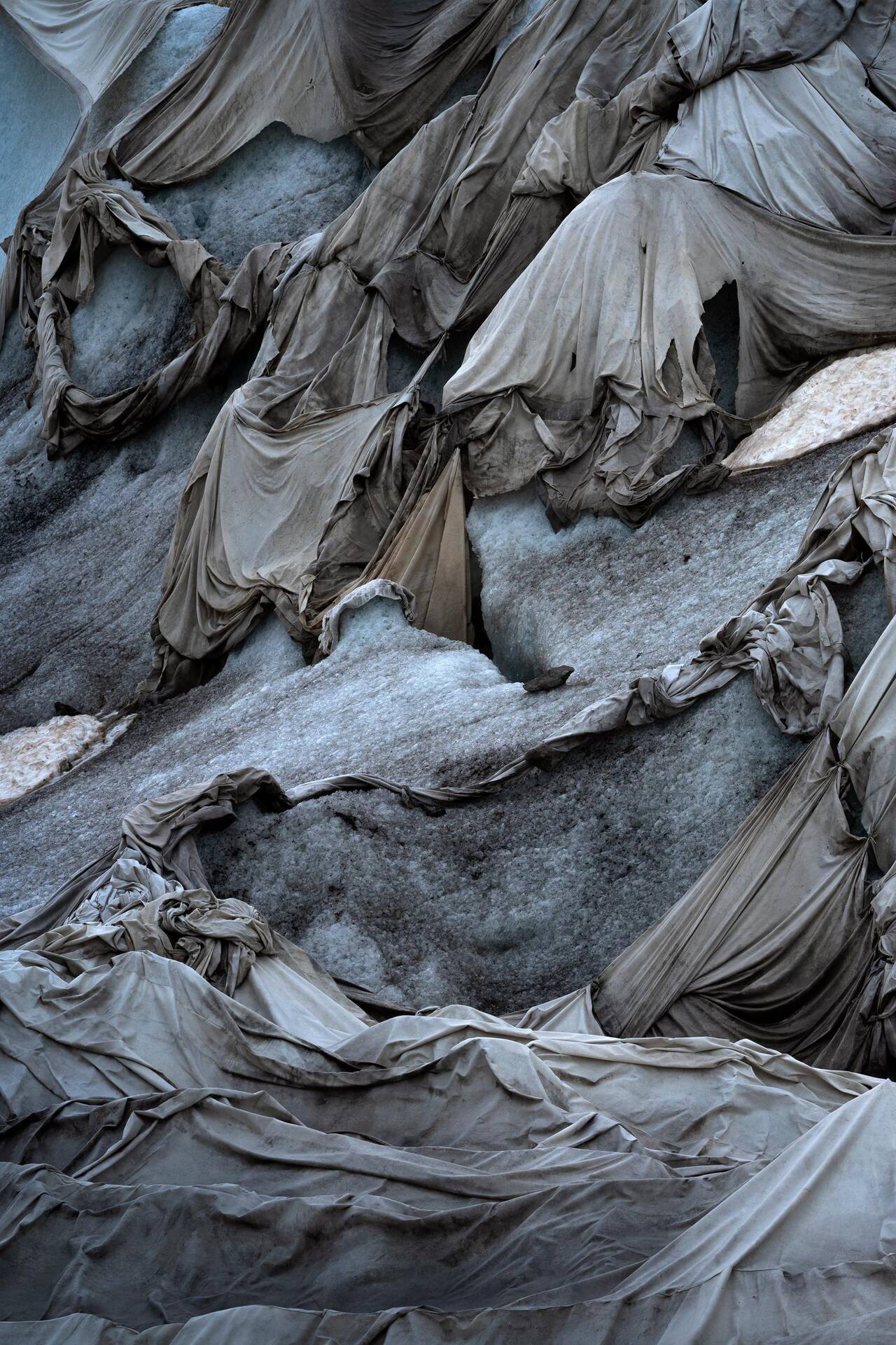 Depuis 2004, afin de freiner ce processus, des toiles géotextiles sont posées sur certaines portions – très limitées – de plusieurs glaciers alpins, en France, en Suisse, en Allemagne, en Autriche et en Italie. Résultat: des transformations parfois spectaculaires du paysage ainsi que des impacts écologiques non négligeables dont témoignent de nombreux photographes internationaux.
