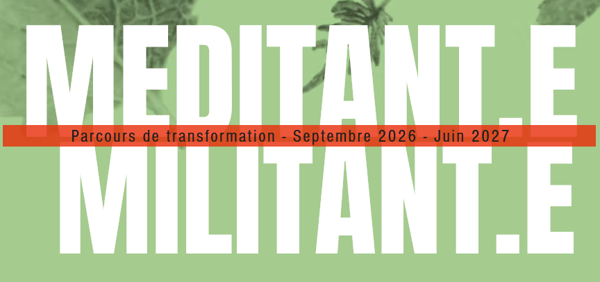 À travers des sessions en présentiel et un cheminement personnel d’intégration et d’accompagnement entre les rencontres, un parcours de (trans)formation pour contribuer à la grande transition vers un monde plus juste, solidaire et durable au sens fort. Cela, à travers l’émergence de personnes méditantes-militantes ayant identifié leur mission de vie et clarifié leur désir d’engagement, développé leurs ressources intérieures et acquis des outils pour les mettre en œuvre et les transmettre à d’autres.