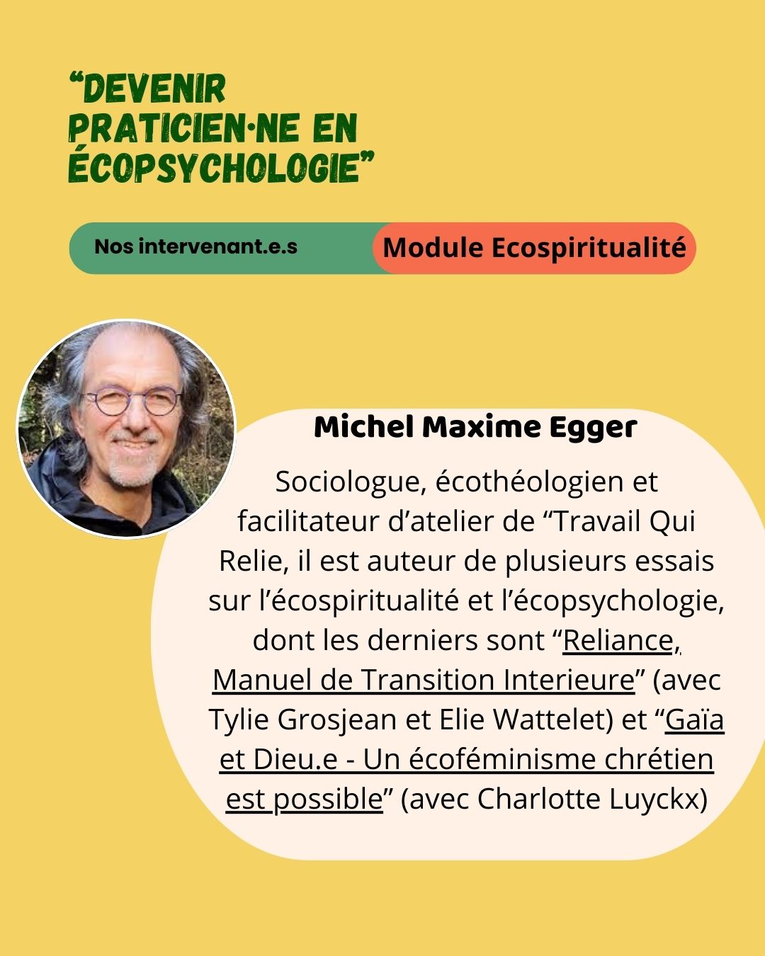 SessionLa formation «Devenir praticien·ne en écopsychologie» revient en 2026-2027 pour sa cinquième édition. Entre stages saisonniers en présentiel dans des lieux inspirants, visioconférences avec une quinzaine d’intervenant·es, supervisions et codéveloppement de projet, un parcours pour expérimenter avec d’autres l'écopsychologie et se relier plus profondément au Vivant. Un corpus de 11 modules, dont l’un sur l’écospiritualité, visant à acquérir des compétences pour comprendre et mettre en œuvre les nécessaires changements de paradigmes sociétaux et individuels, acquérir une posture plus engagée, subversive et compatissante au service de la Terre, faciliter des écopratiques en lien notamment avec la traversée des troubles de santé mentale générés par les dégradations écologiques.